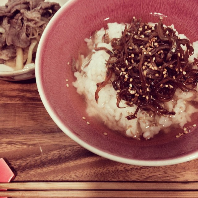 姫路のおかあさんが送ってくれたくぎ煮で、 押し麦のくぎ煮茶漬け。 最近常備食作りにハマってるので、 牛肉と玉ねぎのマリネをおかずに。最高♡ 竹村真奈